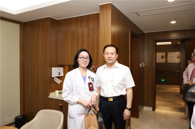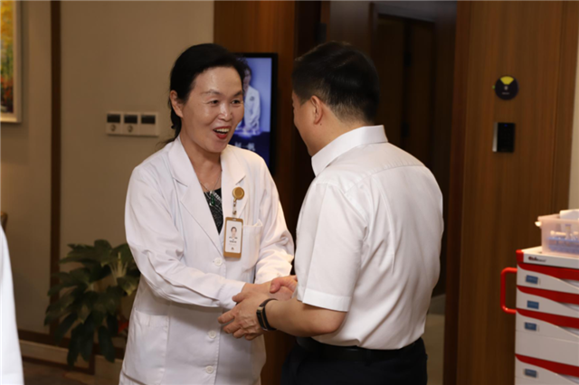 吴志雄董事长和各科室的医务人员亲切握手、交谈,详细询问工作情况,并向医师们表示衷心的感谢,对他们常年坚守在医疗一线所付出的努力给予了充分的肯定。