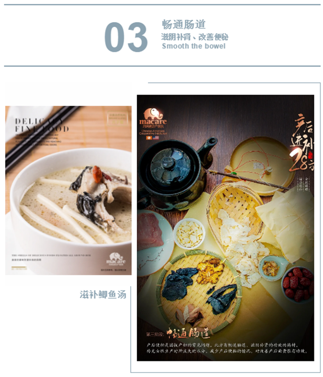 【润肠通便的第三周】产后便秘,排便不畅是困扰产妇的常见问题,在第二阶段增强产后抵抗力的基础上,第三阶段加入有畅通肠道、滋阴补肾的功效的药材,补充女性生产时所流失的水分,减少产后便秘的情况,对改善产后面黄、头晕很有功效