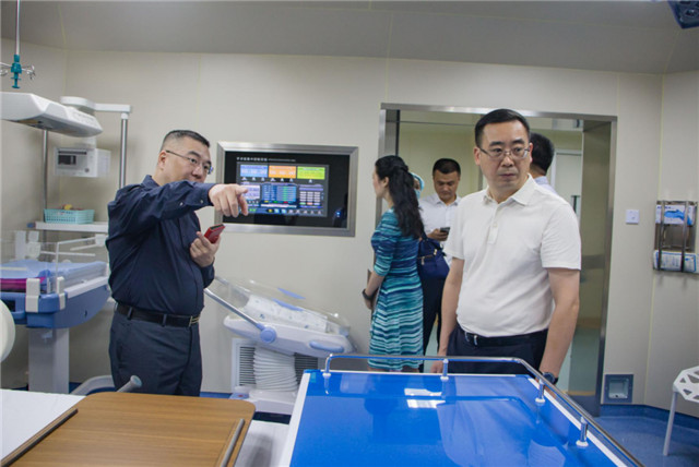在李师阳总裁的陪同下,德阳市领导参观了玛珂迩的儿科、妇产科、产康医美的门诊部,以及玛珂迩的产房、住院客房、学术厅等区域。