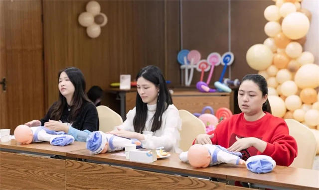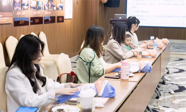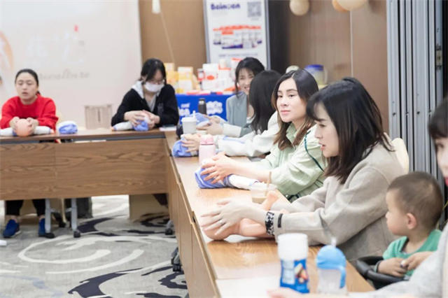 ❒ 妈妈们听得很认真,跟着老师学习给宝宝做抚触