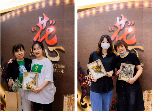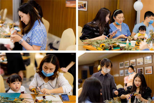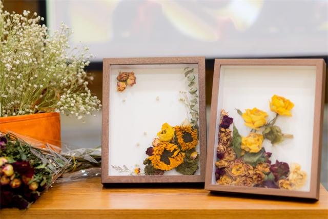 每个人都很认真的发挥着自己天马行空的创意,五颜六色的干花按照自己喜欢的方式为相框布局设计,做成独一无二的美丽。