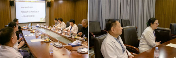 随后,高喜容教授一行与玛珂迩业务院长周云清、董事长助理兼行政院长谢钱灵、儿科副主任医师黄晓春主任、何舒杰主任等人进行了交流座谈会。黄晓春主任向高喜容教授一行分享了玛珂迩新生儿科医生全程陪产、新生儿复苏、新生儿室医疗设备配置、医联体协作等方面,高喜容教授也向大家分享了新生儿科前沿发展趋势和最新研究热点,并对长沙玛珂迩妇产医院新生儿科的构建提出自己的建议与期盼。