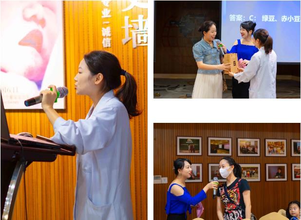 在场的家长们认真听课,积极举手参与有奖问答,小朋友们虽然听不懂问题,却也非常热情,一个个高高地举着小手抢着发言。