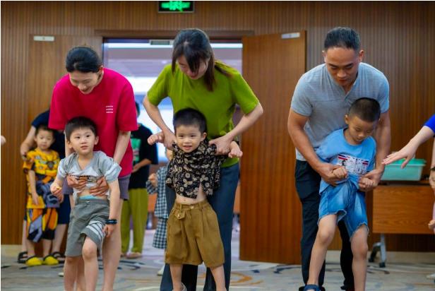 在游戏《大脚踩小脚》中,由海丝博亚国际酒店送出的大奖——价值188元闲茗茶餐厅双人套餐券,将游戏氛围推向了高潮,大家热情高涨,踊跃参与,沉浸在有趣的亲子比拼中~