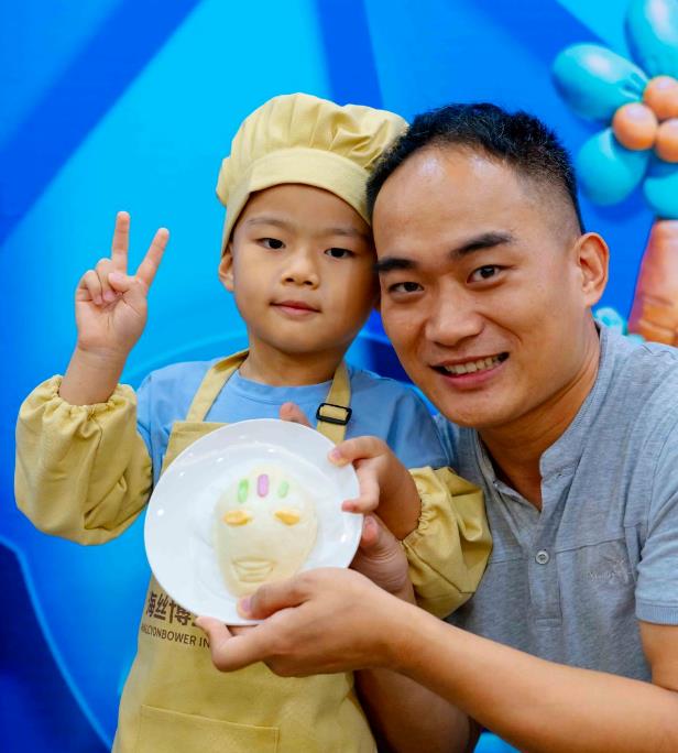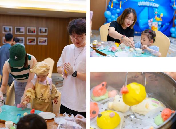 精致的美食给大家带来了无穷的乐趣,亲子配合共同创作,将天马行空的创意付诸实践,形成可口的食物,小朋友们一个个兴奋不已,馒头上锅开蒸时都守着蒸笼数着时间。