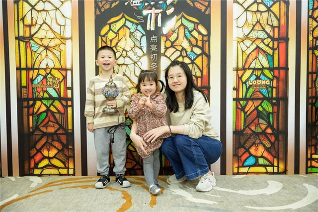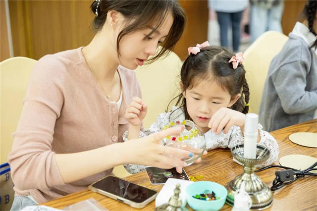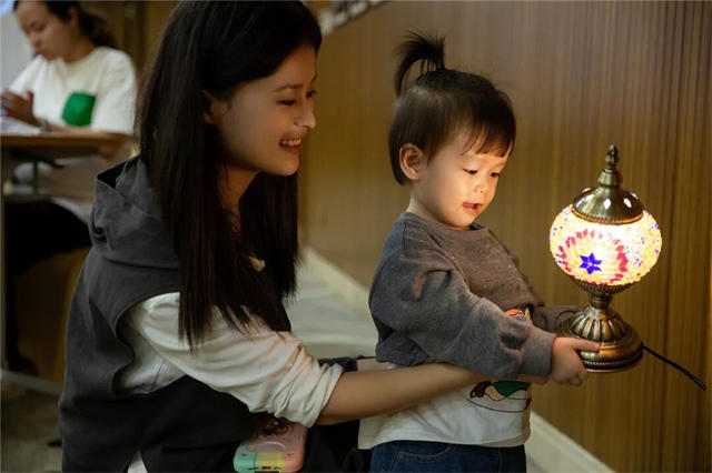 宝妈们和宝贝们专注于自己手中的烛台灯,一颗一颗的往上装饰自己心中的“画布”,每一盏灯都各不相同,独具风格,大家沉醉在手作的过程,暂时摆脱日常的烦恼,享受这片刻的宁静。