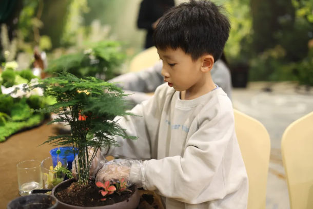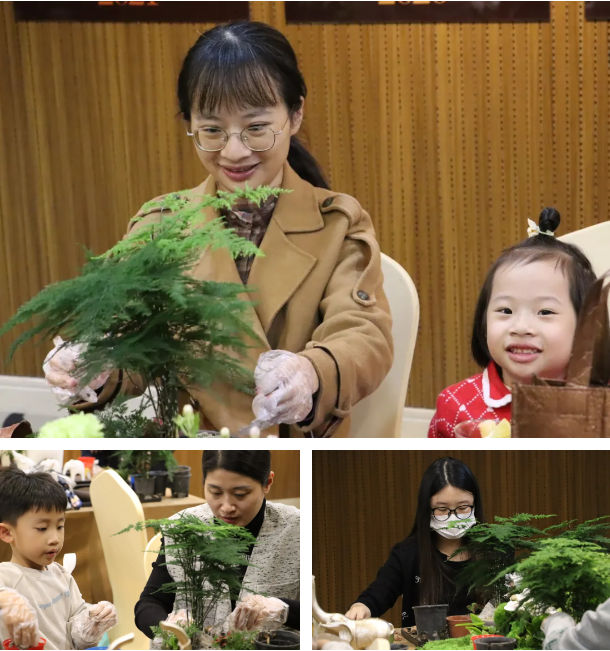 在专业老师的耐心指导下,宝妈和宝宝们纷纷化身“园艺大师”,全身心投入到创作中。